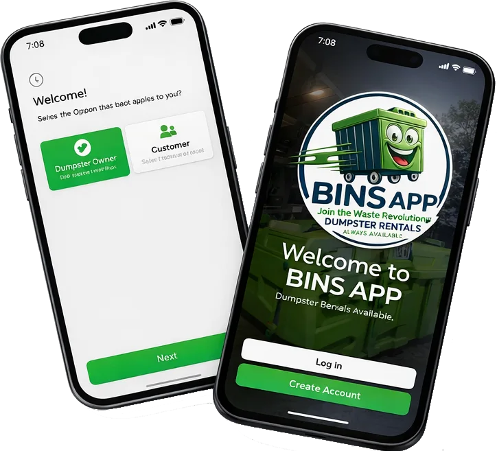 - BINS APP puts dumpster rentals in the palm of your hand.